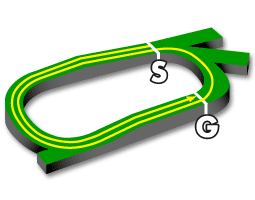 スタート地点は向正面直線入口。芝1300mのスタート地点よりわずかに左。コース全体を一周半回る。スタート後は緩やかな上り坂を進んだ後、3コーナー手前から緩やかな下り坂に入る。3~4コーナーはスパイラルカーブで下り坂。ホームストレッチに入る。ゴール板を過ぎて1コーナーへ。1~2コーナーは緩い上り坂。2周目の向正面直線に入る。再び3~4コーナーを経て、最後の直線へ。ゴール手前340m地点より240m地点にかけては高低差2.0mの急な上り坂。勾配は2.0%で、中山競馬場芝コースに次いで傾斜がきつい坂が設けられている。ラスト240mはほぼ平坦。芝コース全体の高低差は3.5m。最後の直線距離はAコース時、Bコース時ともに412.5m。