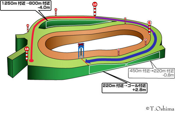 中山芝1600mと同ラップ(後半6F~4Fとラスト3Fの差-0.73秒)の条件は芝1600m以上では存在しない。非常に特殊な条件であり、他の競馬場の同距離で好走していても中山で好走出来るとは限らないということが言える。ただし、京都芝1400m内回り(-0.90)、阪神芝1200m(-0.78)、中京芝1200m(-0.74)の3条件は似たようなラップになっているため、距離がもてば好走出来る可能性が高い。