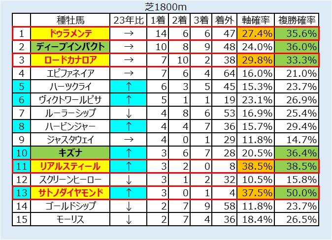 ・他に1~3番人気のディープインパクト、2・3番人気のカナロア、サトノダイヤモンドも狙える。