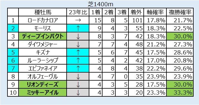 本命は①ウインマーベル。父アイルハヴアナザーはミスプロ~フォーティナイナーの血統。ダートの血が濃いだけに道悪も苦にしないだろう。相手は前走セントウルS(GⅡ)より距離が200m延びてより適性距離に近づくディープ産駒⑦スマートクラージュと指数高い⑮ダノンティンパニーを厚めに、4歳で3連勝中の⑯アサカラキングと調教が良かった⑱メイショウホシアイまで。