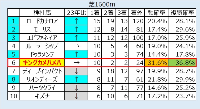 後は指数が高い馬の中から上がり3位以内の脚を使う可能性のある⑥スウィープフィートと⑨スティールブルーまで押さえる。