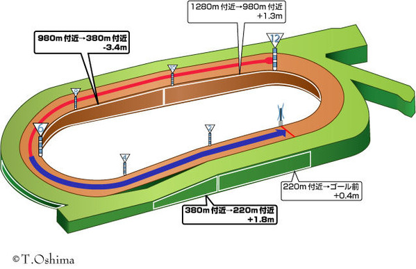 ・馬券の軸は外枠(7~8枠)の逃げ・先行馬を狙う。