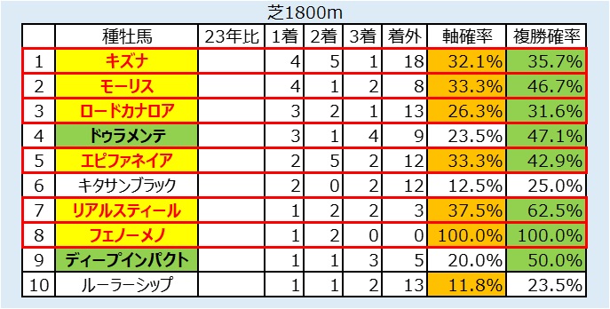 ・スタート地点は芝のため外へ行けば行くほど芝が長くなるダート専門血統馬には不利に働く。