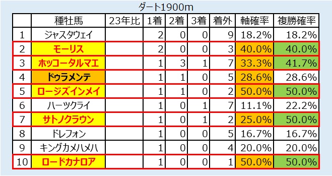 相手はハナ争いをせず控えた時の実力馬⑭カネトシブルームと、最高指数を持つ②ゴールドバランサーを厚めに、4歳でこの条件を勝っている⑥スマラグドス、ホッコータルマエ産駒⑩シダー、前で粘った時の⑬ジュタロウまで押さえる。