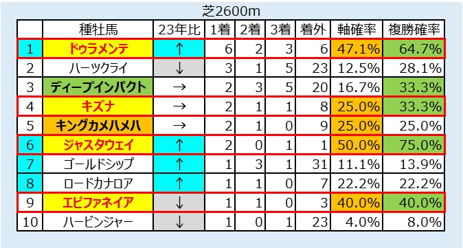 相手は前走函館記念(GⅢ)5着の⑥プラチナトレジャー。こちらも父キンカメに母クロフネとなるとマイルよりちょっと長い距離がベストのように思うが、重賞実績を持った馬がこの2頭だけなので、600mの延長を克服できるかどうか?がポイントだと思う。