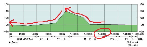 ・3角の上り坂でペースが緩む+長い直線を意識=スローになって追走課題の短縮馬が走りやすい
