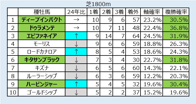 ポイントは距離短縮馬の好走率が非常に高い点。これは、主なローテーションとして12~1月の2000m重賞の次走にこのレースを選ぶケースが多いということも関係しているが、タフな馬場状態でのレースになるため、短い距離からの距離延長ではスタミナが足りず、距離短縮して来た馬が好走するという図式だ。