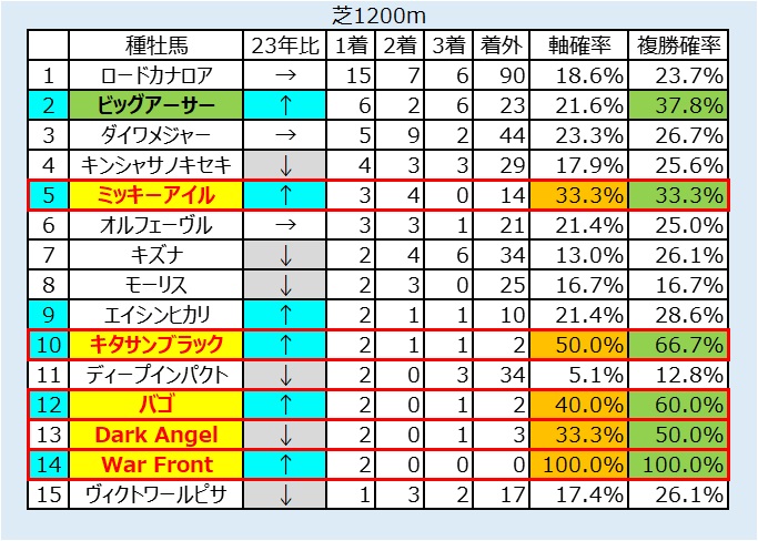 元々、中京芝1200mは向こう正面の上り坂からスタートし、直線距離はスプリント戦ではJRA最長の412.5mあるため、先行争いが激化し逃げ馬が苦戦する傾向にあるが、今年は前述した強力な逃げ馬が不在になったことでペースが緩む可能性が高く、また今週からBコースに替わることから内前有利は必然で、逃げ馬の前残りに注意が必要だ。該当馬はペアポルックス、ビッグシーザー、ウイングレイテストの3頭。特にペアポルックスは鞍上の岩田康誠騎手がクセ者で今回行く可能性が高い。ビッグシーザーもブリンカーを着けると西園正調教師が明言しており、逃げになるかは別にして位置を取る気満々。この2頭には特に警戒したい。
