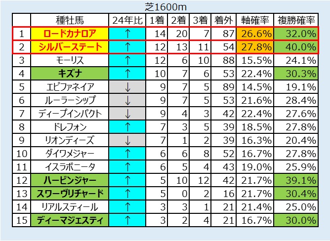 ・良馬場で単勝20倍以内のシルバーステートを狙う。稍重~不良はヒモに落とそう。