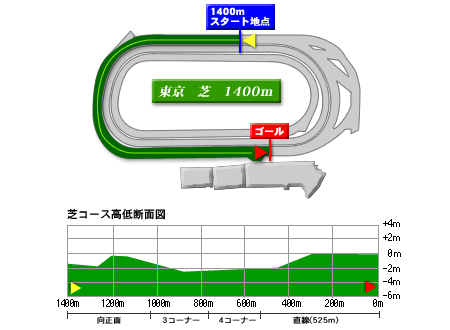 ・基本的に他場1400m戦よりペースは遅く、スローからの瞬発力勝負になる。