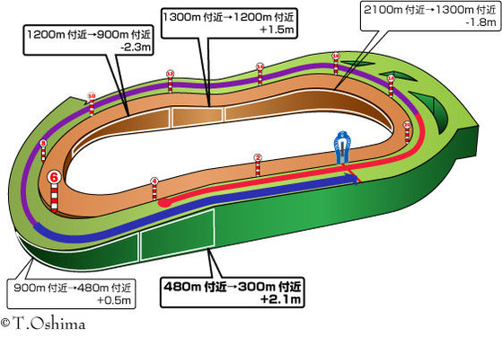 ・基本的に差し馬有利で、消耗戦での末脚勝負となりやすい。