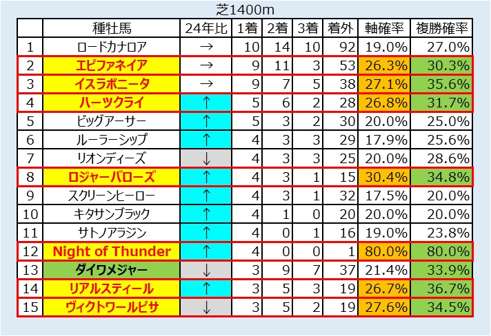1~9番人気で社台ファーム生産のイスラボニータを狙う。【7,5,4,8】勝率29.2%、連対率50.0%、複勝率66.7%。また、内枠は基本的にプラス