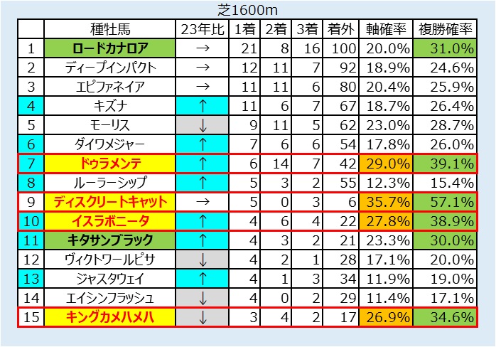 ・1~3枠及び7~8枠のカナロアを狙う。また前走5~8着馬は巻き返し率が高いので積極的に狙う。
