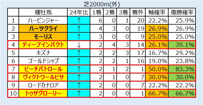 ・持続力が非常に求められ、スピード系よりタフな持続力系を狙うレース。タフ馬場だとダート実績馬の大穴も見られる。