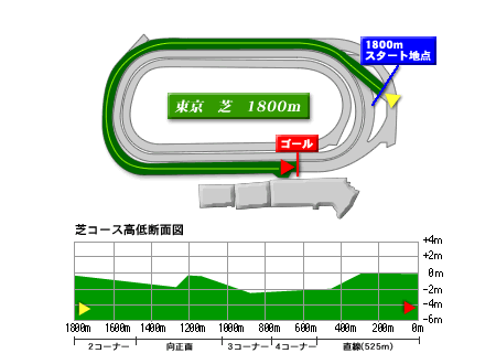 ・マイル戦と違い2コーナー地点でラップが緩みやすいため前半はスロー。後半の末脚勝負となる。