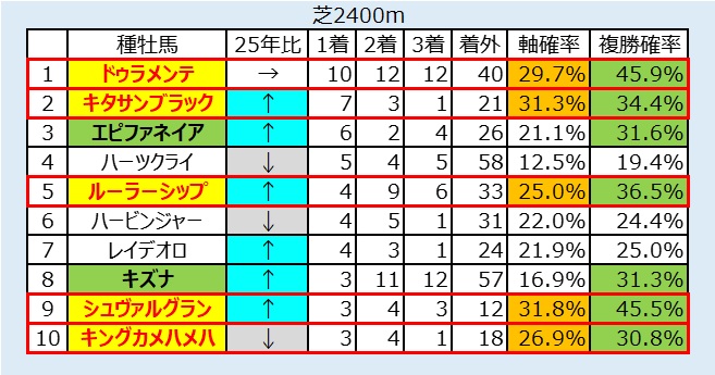 ・またハービンジャー、キンカメ系(ルーラーシップ、ドゥラメンテ、レイデオロ)、キタサンブラックの牡馬も狙える。
