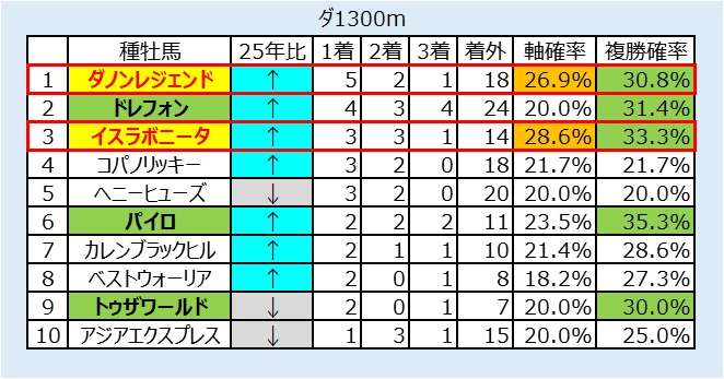 ・一方で距離短縮馬の成績は優秀で、東京ダ1600mからの短縮馬に注目。