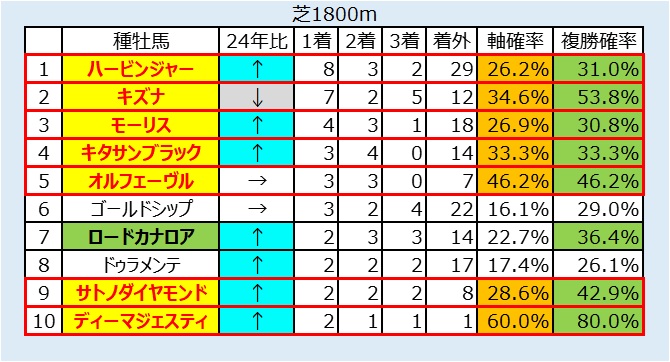 ・前走ダートからの芝替わり馬の成績が優秀。前走ダート出走馬を狙う。
