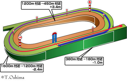 ・スタミナの要求値が高いため逃げ・先行馬有利だが、逃げ馬と差し馬の複勝率は大差ない点に注意。