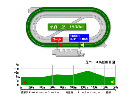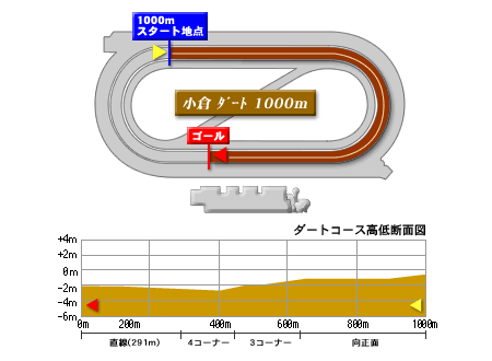 ・向正面からスタートし最初のコーナーまで263.9mで、その後1周半する長距離戦。