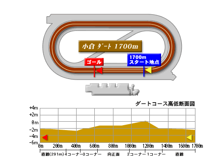 ・4コーナーのポケットからスタートし、最初のコーナーまで471.5mと距離が十分あるおかげで先行争いが激しくなりやすい。