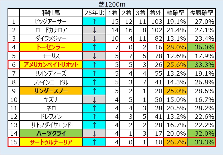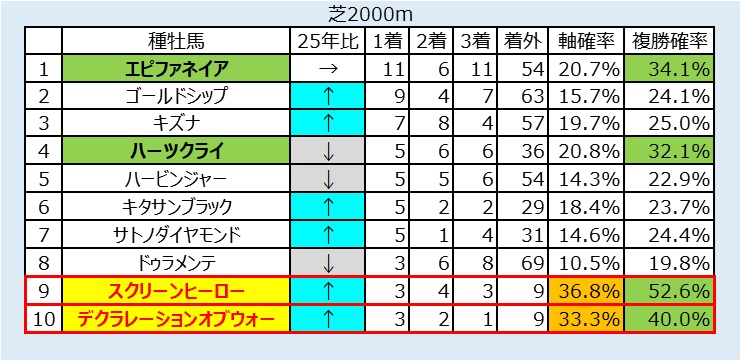 ・単勝50倍以内のダイワメジャー、単勝30倍以内のハーツクライ、3・4歳のエイシンヒカリも狙える。