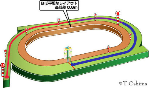 ・下記コース図参照。テンから目一杯飛ばしてそのままなだれ込むレース。D指数に注意。